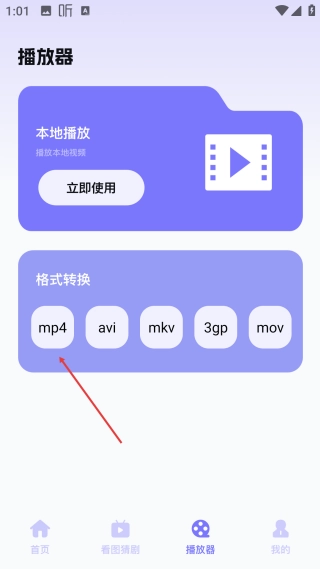 在播放器页面,点击【mp4】格式选项,即可进入视频选择的操作界面。