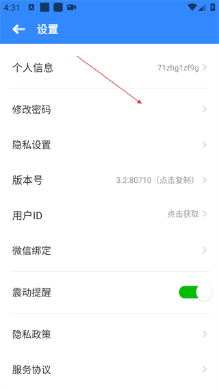 3、进入设置页面后,可看到【个人信息】【修改密码】等选项,按需选择对应功能进行操作。