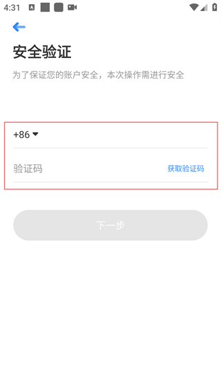 4、进行部分操作时会进入安全验证页,需填写手机号并获取验证码,完成验证后才能继续。