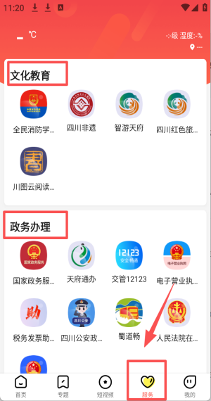 3、在服务页面点击“政务办理”图标,进入相关服务页面。