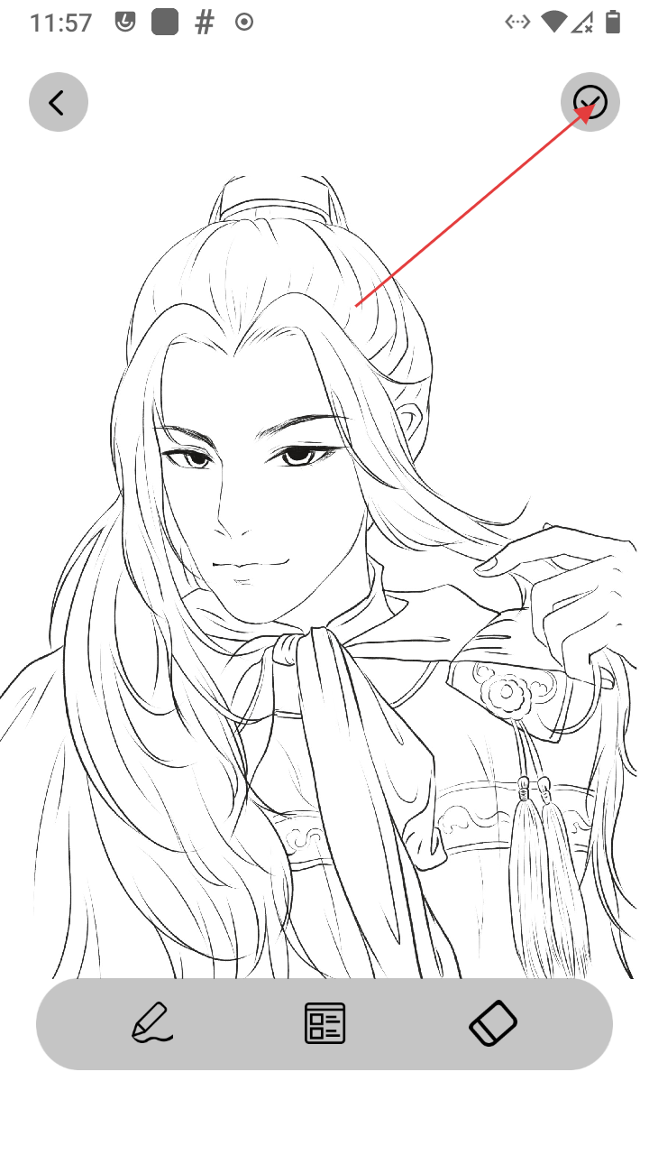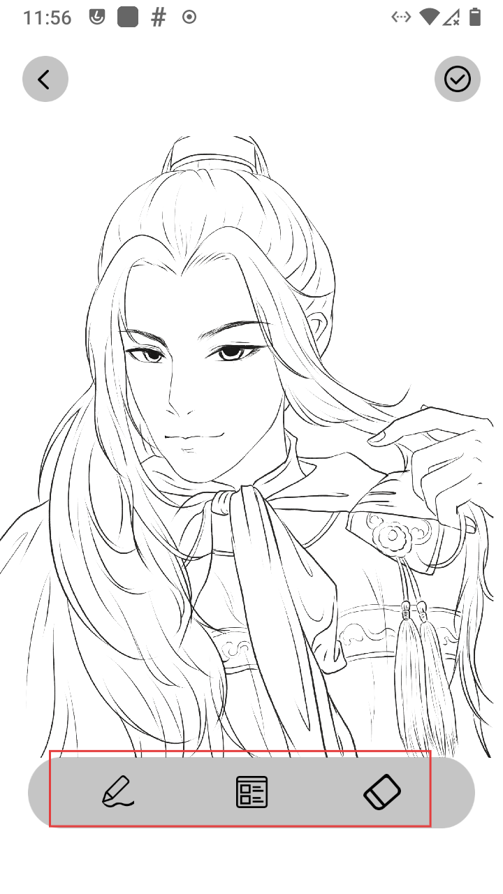 3、进入绘画页,用底部画笔、调色板、橡皮擦等工具进行创作。