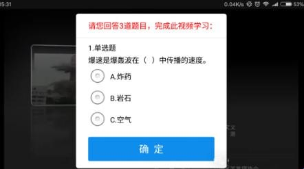 11、最后,播放完该视频,APP会弹出几道题目供学员回答,学员全部回答正确之后,才算完成了该视频的学习:(答错没关系,重新选择答案,直到答对)