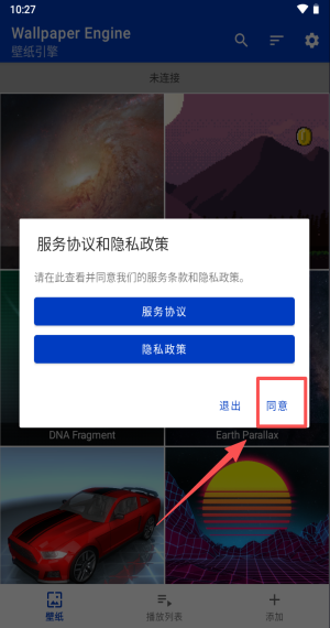 1、阅读服务协议与隐私政策后点“同意”,即可进入壁纸预览列表。