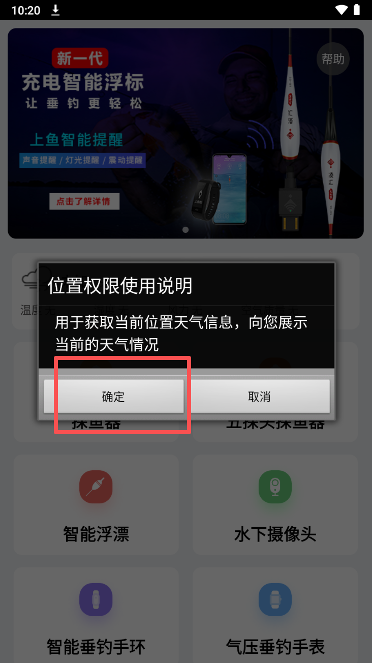2、在主界面,点击“确定”按钮以授权应用获取位置信息。