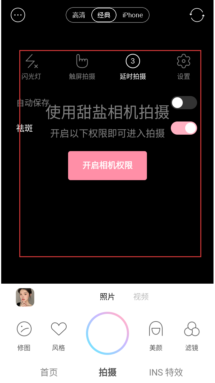 2.素颜拍摄:甜盐相机专注于素颜拍摄,不需要用户进行繁琐的化妆步骤,让用户能够轻松拍出干净自然清透妆容的效果。