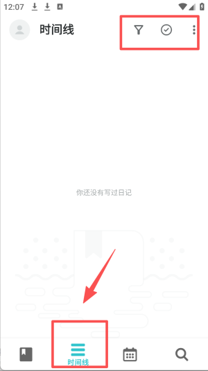 3、查看时间线,点击“时间线”图标,按时间顺序查看日记记录。