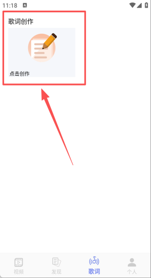 2、返回后点底部“歌词创作”按钮,正式进入写词工作台准备动手。
