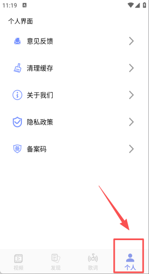 4、进入“个人界面”点“备案码”完成发布,再清缓存保持App流畅。