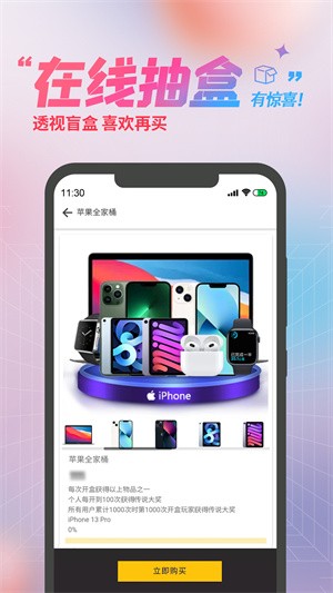 2.可直接使用该软件在线购买各类盲盒资源,无需任何复杂流程,一键支付开启盲盒更便捷。
