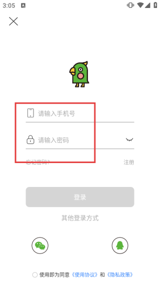 2、在登录界面中,找到【请输入手机号】和【请输入密码】输入框,分别填入对应信息。