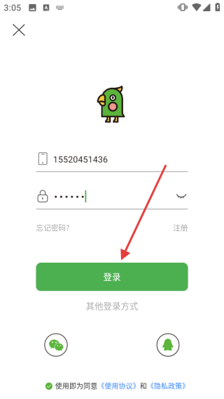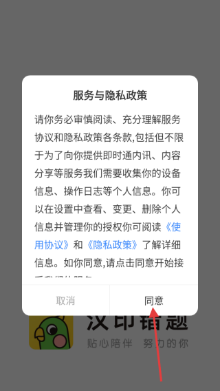 1、打开应用,弹出【服务与隐私政策】窗口,仔细阅读后点击【同意】,接受协议进入登录界面。