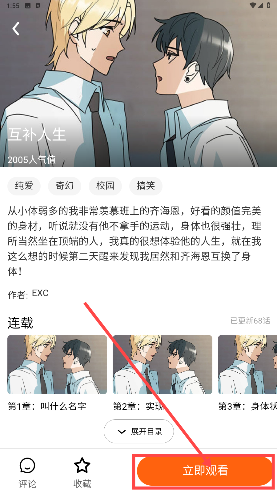 2、进入漫画界面后点击【立即观看】。