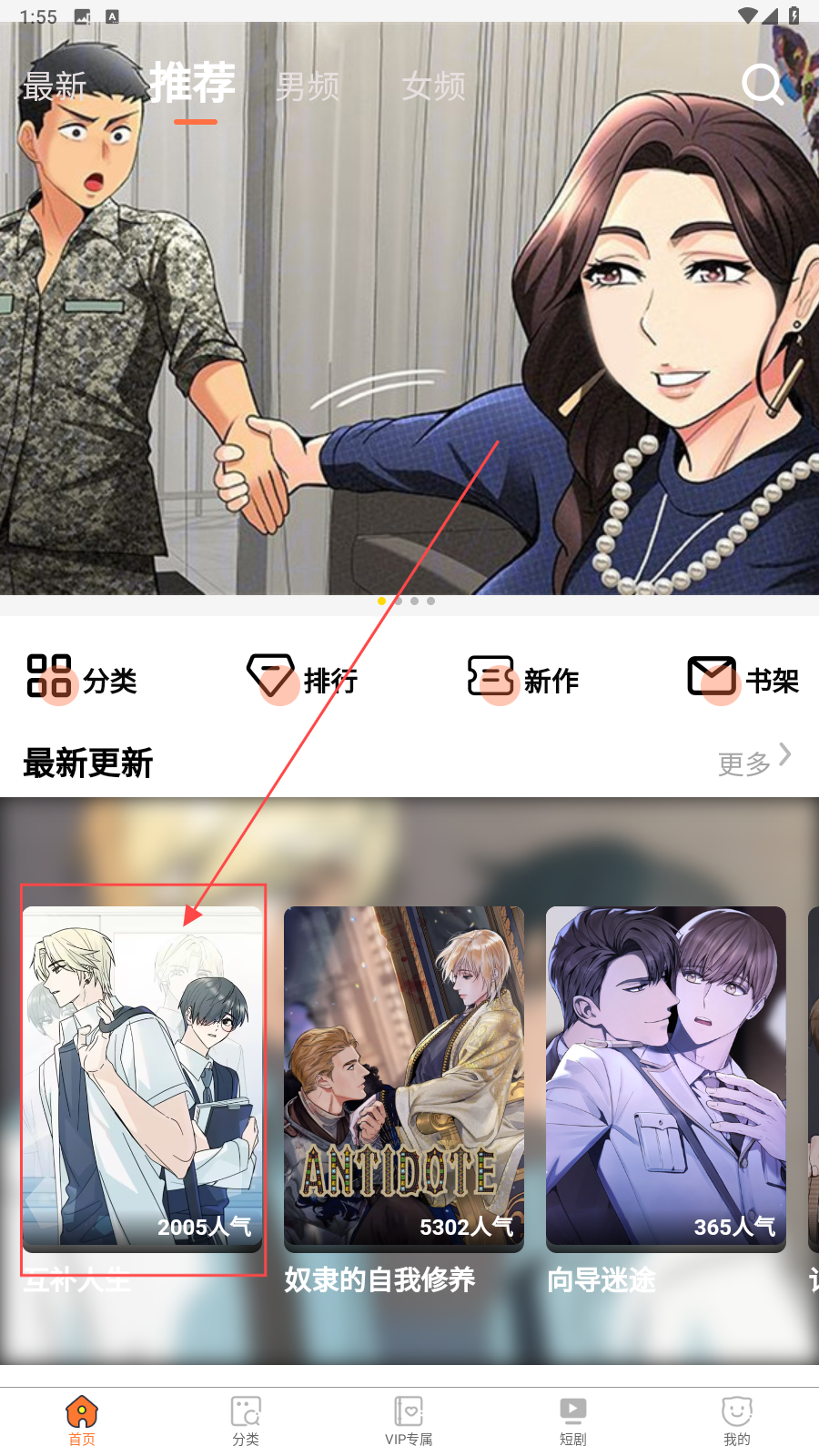 1、打开应用,选择想看的漫画点击。