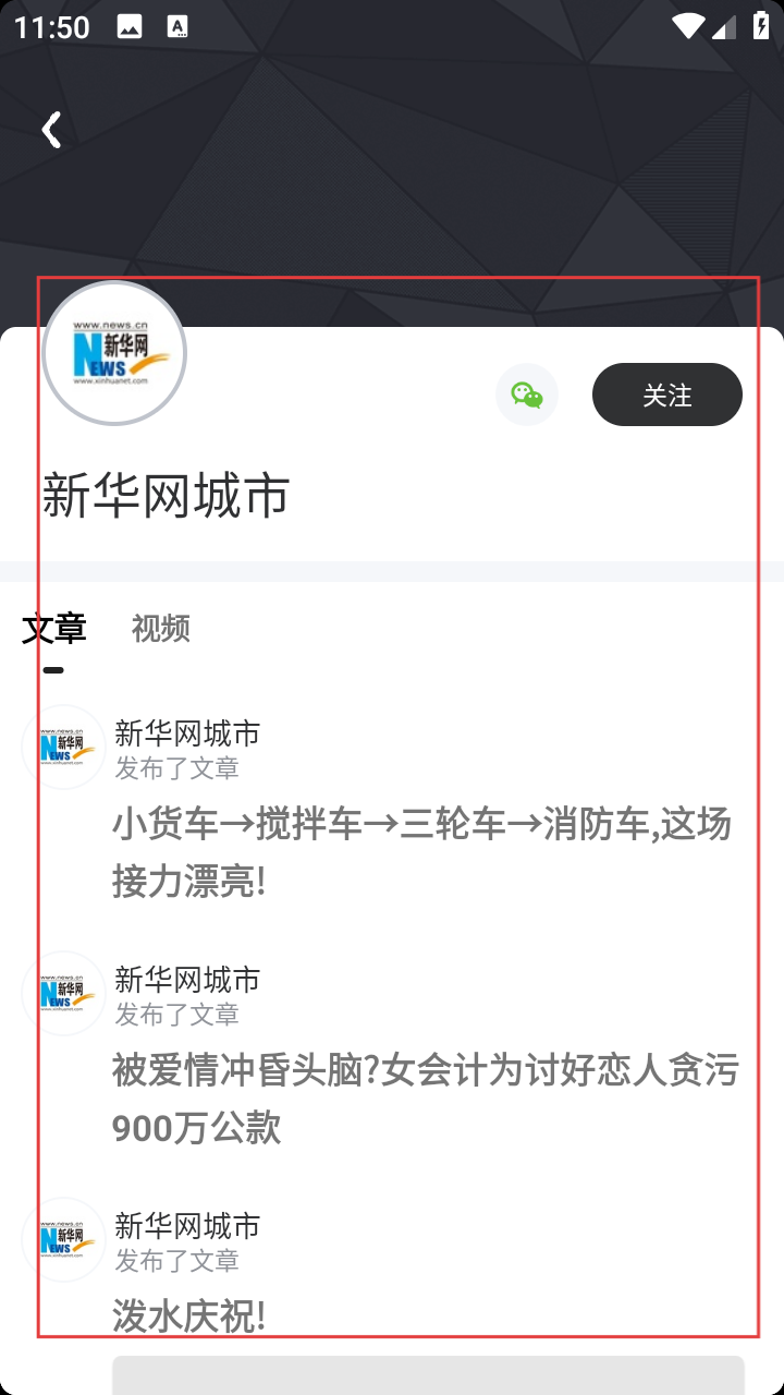 4、进入媒体详情页,查看其发布的文章、视频等内容,了解资讯。