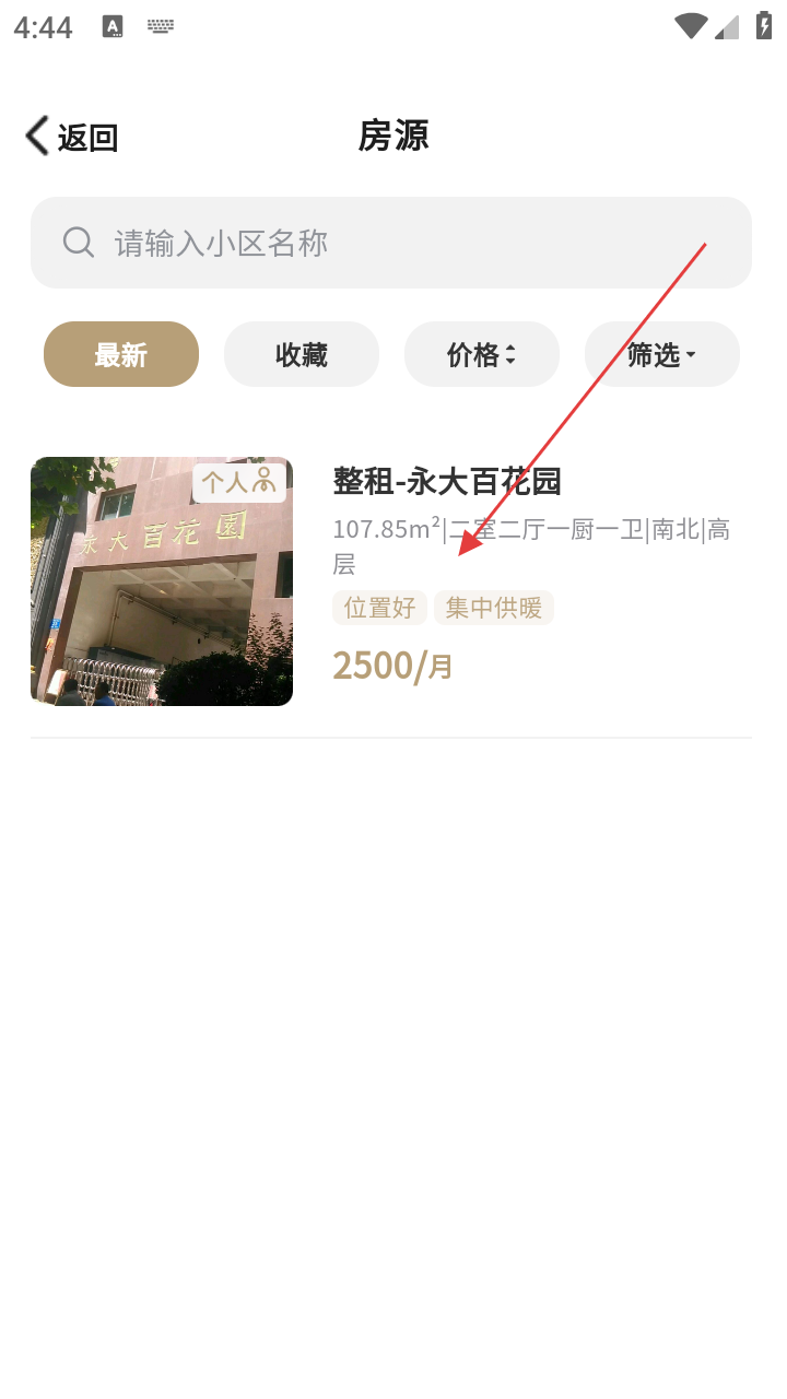 2、在房源列表,选感兴趣的“整租永大百花园”房源,进入详情页。