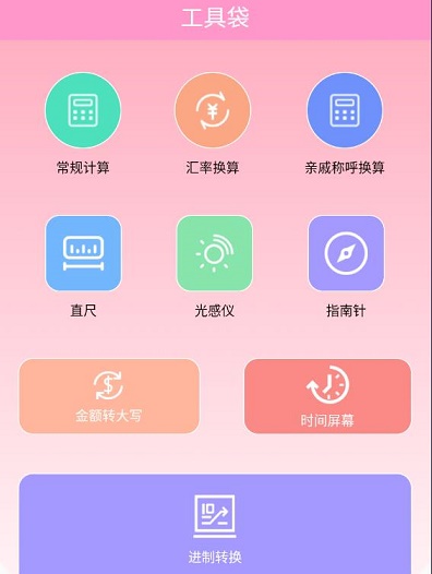 1.玖具成盒app是一款多功能的手机工具箱,提供包括计算器、日历、换算、汇率计算、光感仪等多种实用工具。