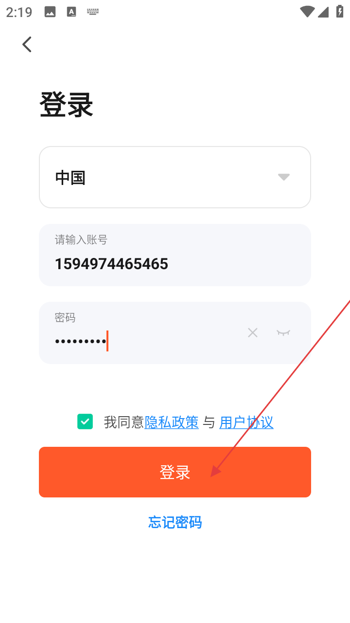 4、填完账号密码,勾选同意协议,点击【登录】按钮完成登录。