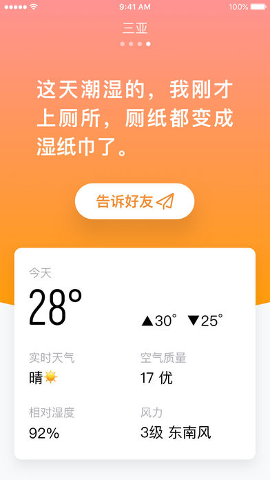 4、支持一键分享天气信息,提醒好友注意天气变化。