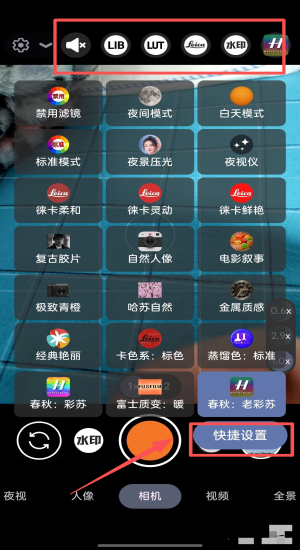 1、滑动模式条选夜视或徕卡鲜艳,再点0.6x切换广角开拍。