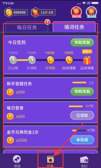 3、在【任务】界面还可以领取任务奖励。