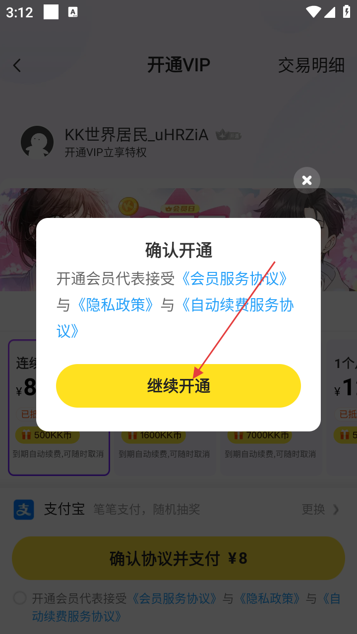 4、点击后会弹出确认开通提示框,点击【继续开通】即可完成VIP开通。