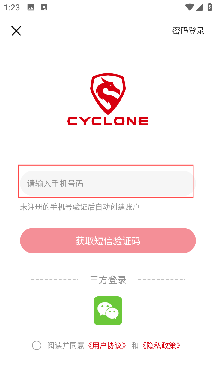 3、登录时输手机号,点【获取短信验证码】,完成账户创建。