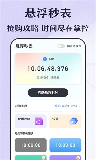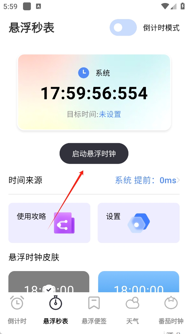 2、点击“悬浮秒表”图标,启动悬浮时钟并设置时间来源。