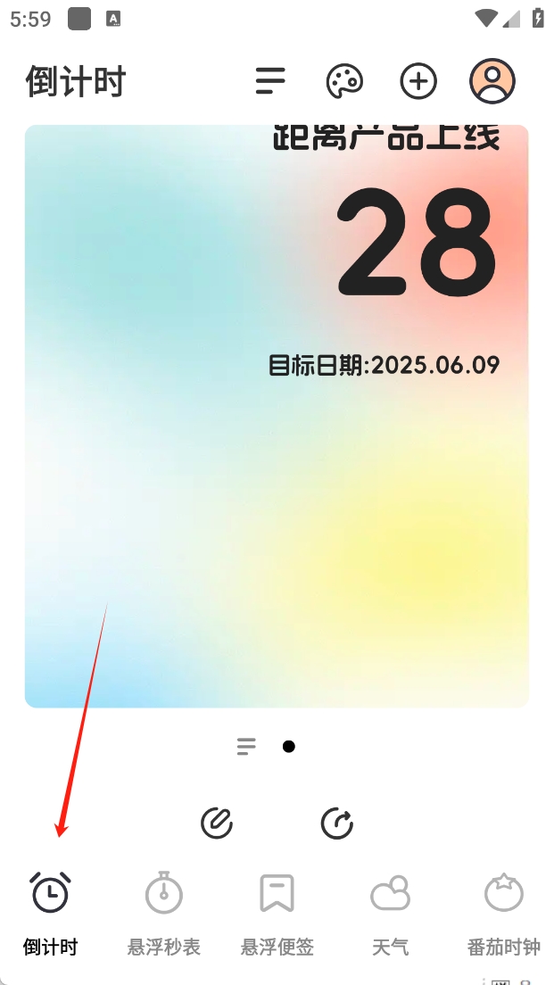 1、点击“倒计时”图标,设置目标日期并查看倒计时。