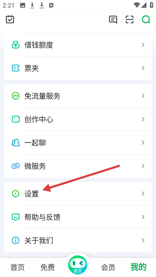 在个人界面点击【设置】选项,进入设置页面。