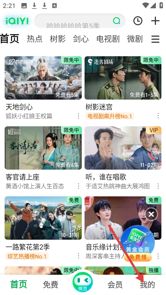 在爱奇艺首页点击右下角【我的】,进入个人界面。