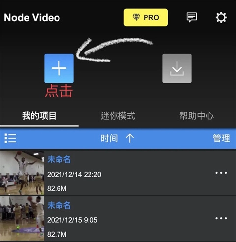 首先打开Node Video安卓版,点击那个问号图标进入剪辑主页,然后导入素材。