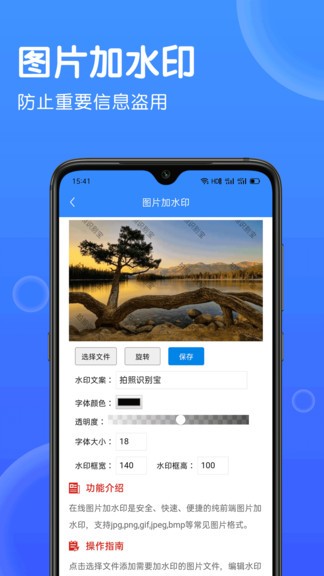 批量水印图片照片和身份证,并可自定义水印文字。添加水印很容易,设置自定义水印是一个透明的一键操作。特别适合微信业务,电商,淘宝,水印也可以轻松添加美图文字,一键分享。