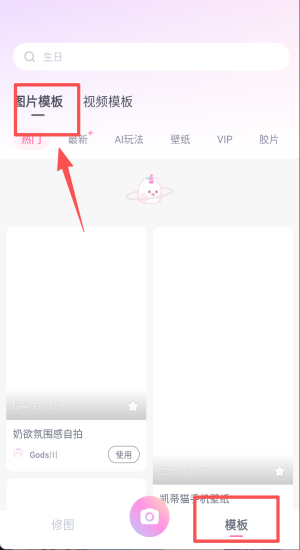 3、切到图片模板选奶欲氛围感自拍,含凯蒂猫胶片等元素。