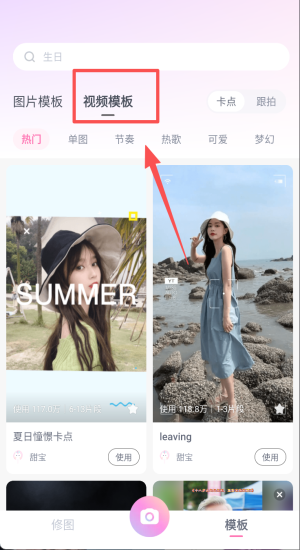 4、进入视频模板热门卡点,挑夏日憧憬节奏模板直接生成短片。