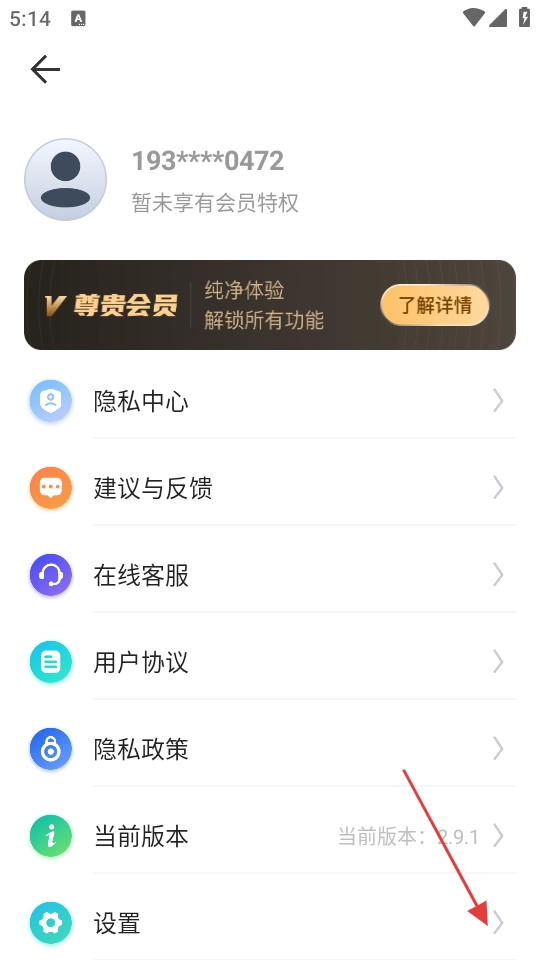 在个人中心页面,点击【设置】按钮,就能进入设置页面。