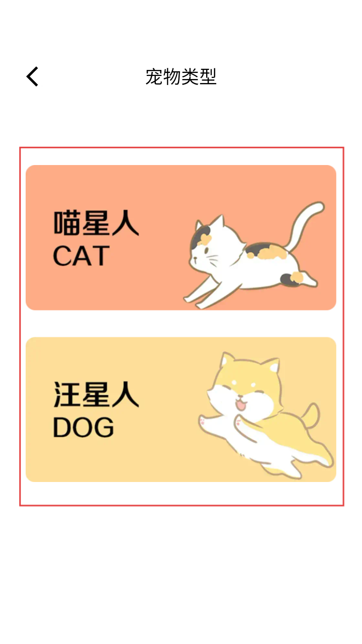 3、选宠物类型页,按需点【喵星人】或【汪星人】,选定宠物类别。