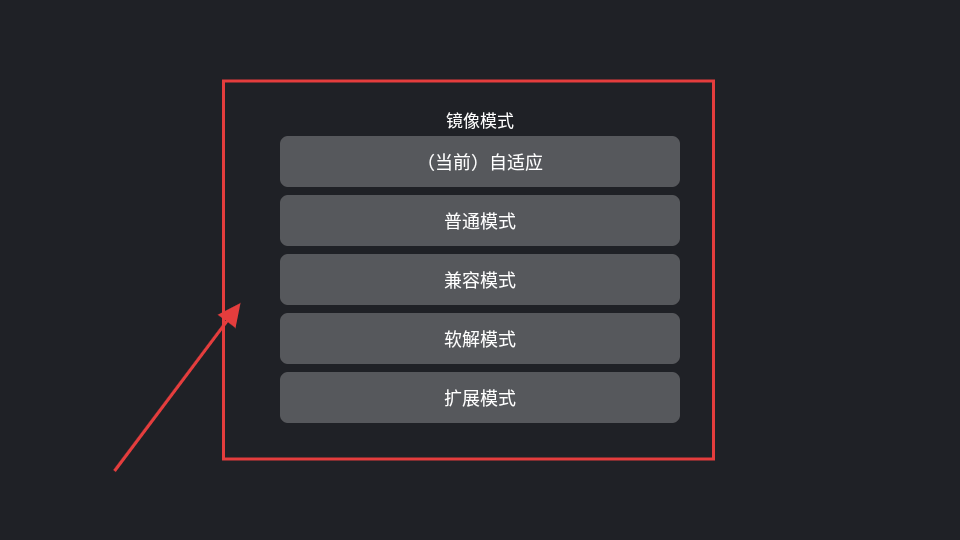 4、在镜像模式选择页面,可选择自适应、普通模式等,根据需求选择即可哦。