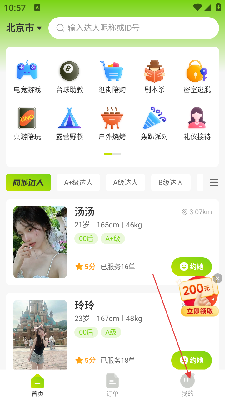 1、打开叫个伴进入首页面,点击底部【我的】。