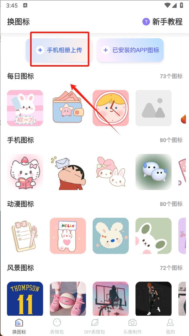 1、打开换图标软件,点击“手机相册上传”按钮,从你的相册中选择一个图标进行上传。