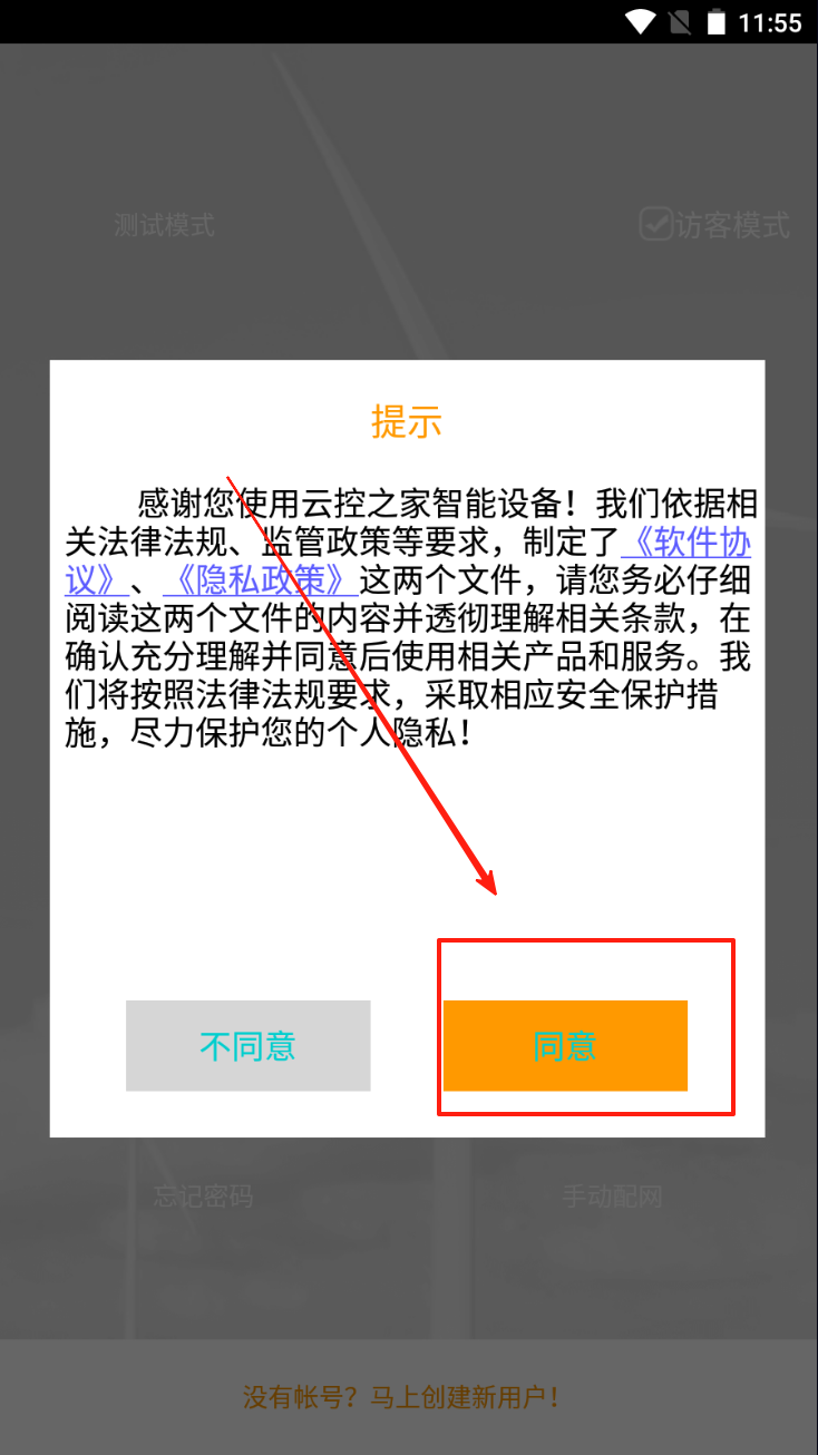 1、同意用户协议:点击“同意”按钮,接受软件协议和隐私政策。