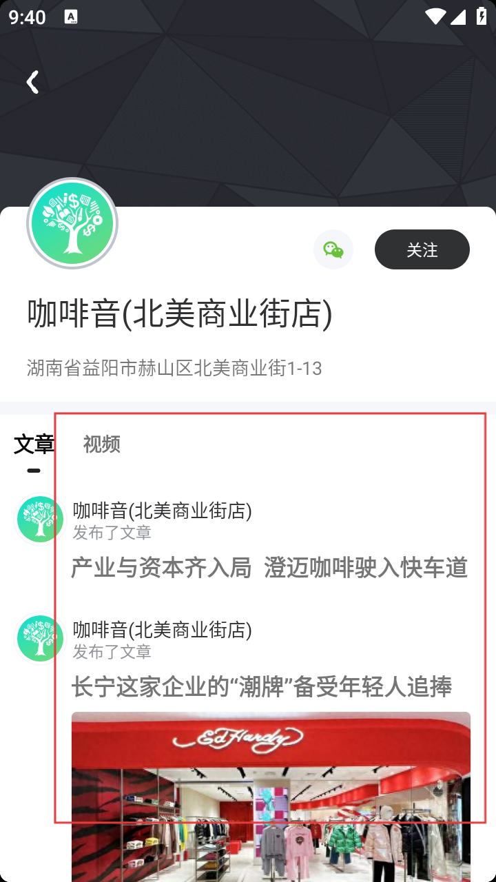 4、进入门店详情页,查看地址、发布的文章等信息了解门店。