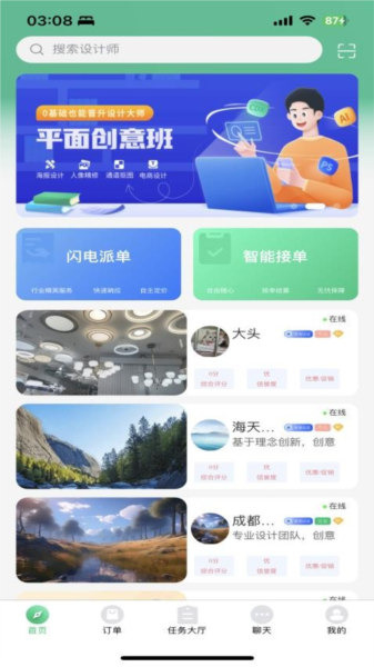 1、平台实时订单推送,设计师可以随时关注和接受新的订单。