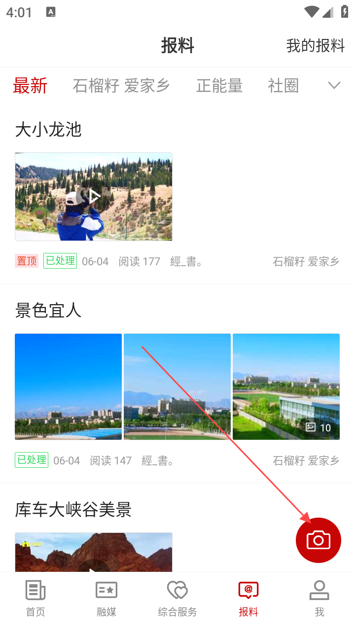 3、进入爆料界面,点击红色照相机标志,跳转至登录界面。