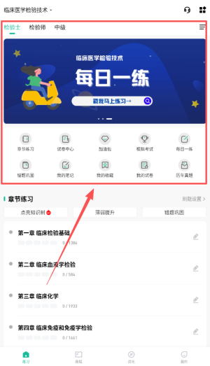 2、在首页中选择不同的练习模式,如章节练习或模拟测试,灵活安排学习时间,全面掌握所有知识点,增强自信心。