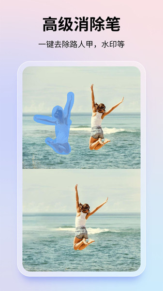 3、先进的消水印笔,一键去除路人,轻松去除水印。