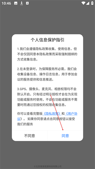 1、在应用启动后的个人信息保护指引弹窗中,点击【同意】,接受隐私政策与用户协议。