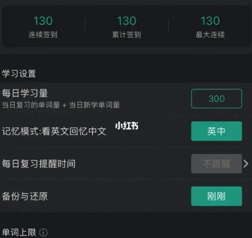 只要你能坚持每日学习,一旦连续学习的天数满了一百天,之后每一天都能额外多拿6个单词上限。