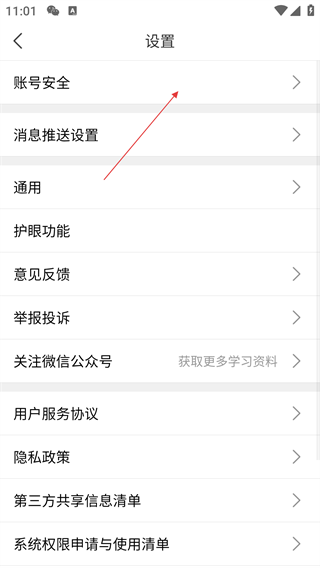 3、在设置界面,点击【账号安全】选项,进入账号安全页面。