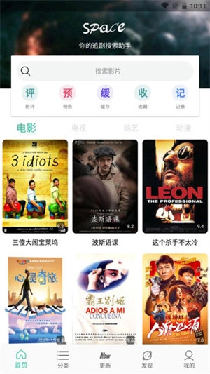 底部导航包含首页、分类、更新、发现与个人中心五大板块,每个板块功能独立且资源充足。