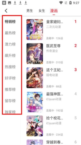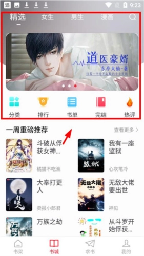 回到首页,就能看到多样的图书分类,像精选推荐、男生专区、女生专区、漫画板块之类的,都可以随意挑选。